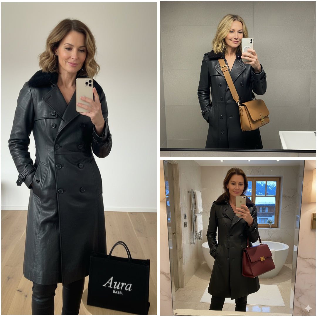 Valentina | Eleganter Ledermantel in 3/4-Länge